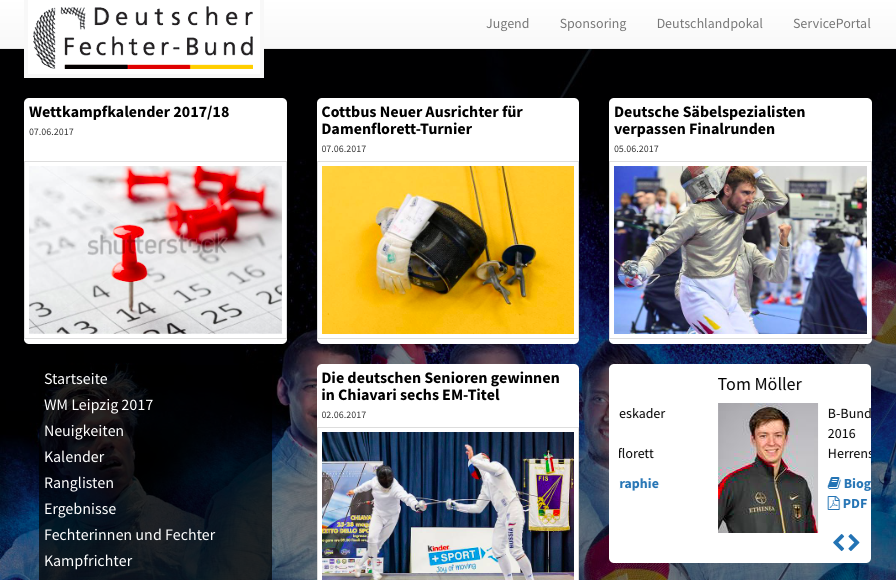 Wir freuen uns, vom Deutschen Fechter-Bund den Zuschlag für die Ausrichtung des DFB-Aktiven-Ranglistenturniers im Damenflorett erhalten zu haben. Am 21. Oktober 2017 erwarten wir im Kolkwitz-Center die besten Florett-Fechterinnen zu ihrem ersten nationalen Ranglistenturnier der Saison 2017/2018.